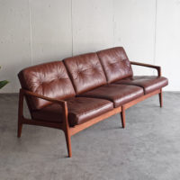 チーク材×本革 3人掛けソファ