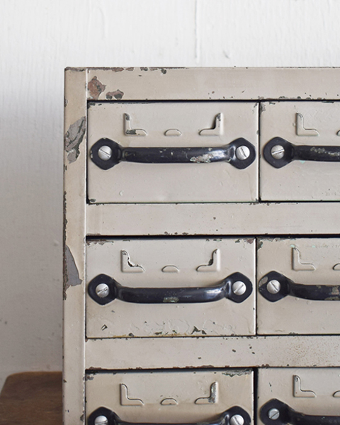 アメリカ製、スチール製のパーツキャビネットが入荷しました。50~60年代頃のヴィンテージ。