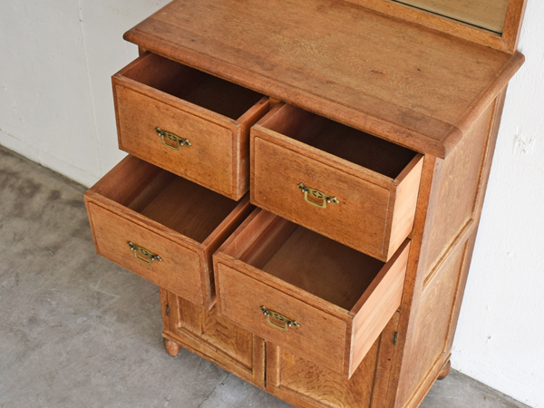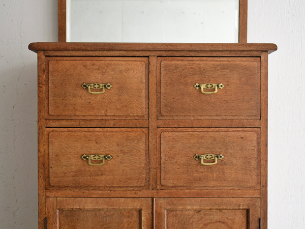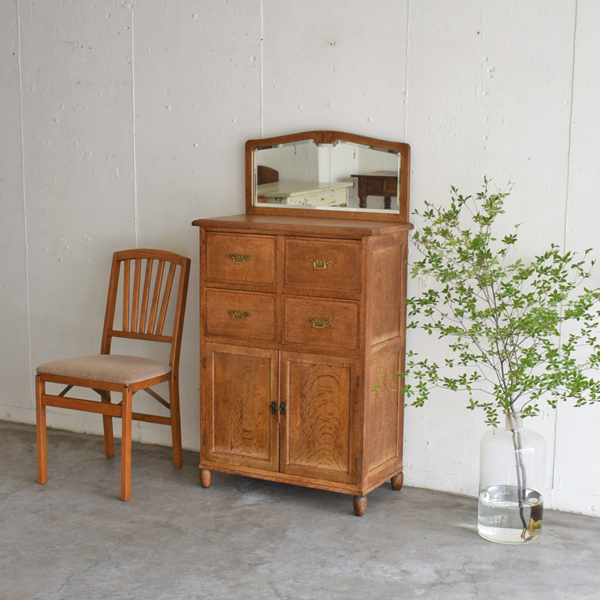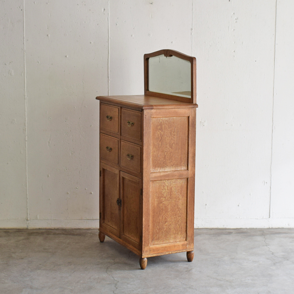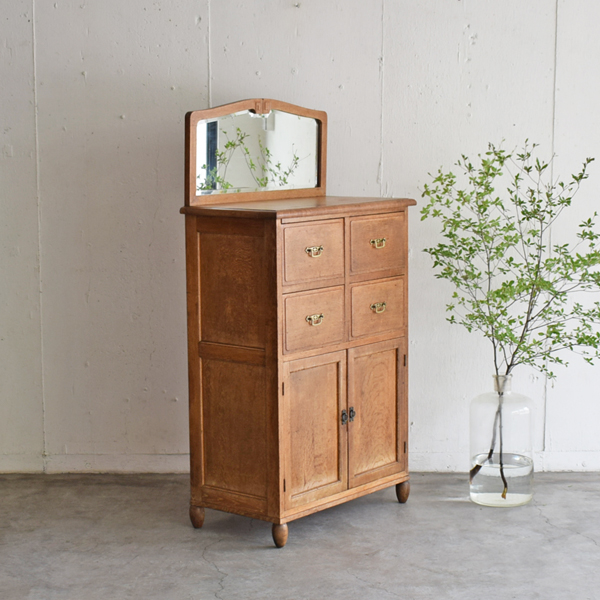 ナラ材 鏡付きキャビネット