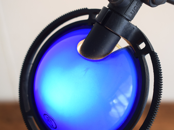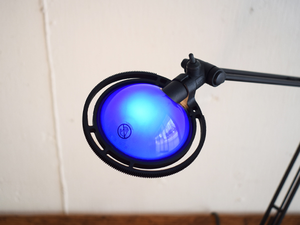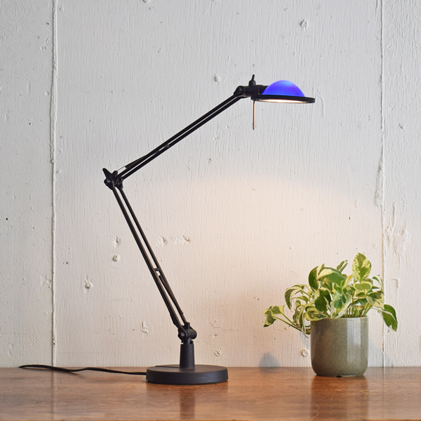 イタリア Luceplan社製、Alberto Meda (アルベルト・メダ) とPaolo Rizzatto (パオロ・リザット) によるデザインのデスクライト、“Berenice”です。ブラックのフレームとブルーのガラスシェードの組み合わせ。ヤマギワにて輸入販売されていたものとなります。