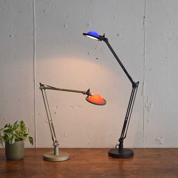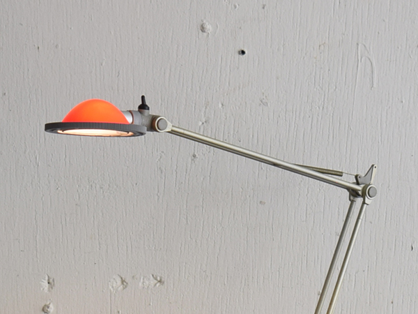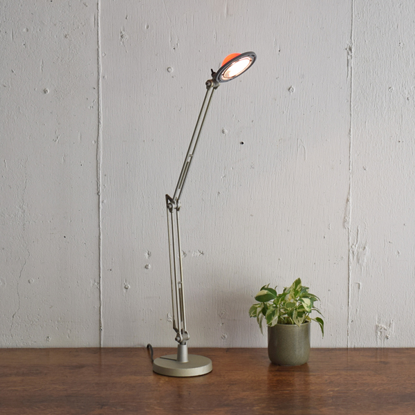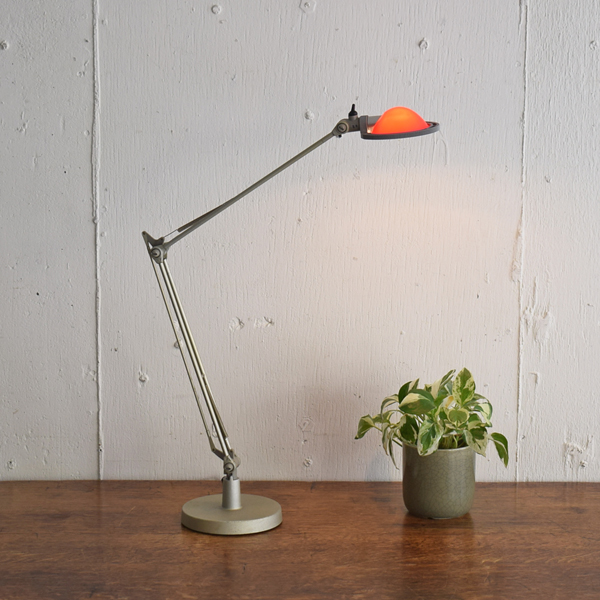 イタリア Luceplan社製、Alberto Meda (アルベルト・メダ) とPaolo Rizzatto (パオロ・リザット) によるデザインのデスクライト、“Berenice”です。シルバーカラーのフレームとレッドのガラスシェードの組み合わせ。ヤマギワにて輸入販売されていたものとなります。