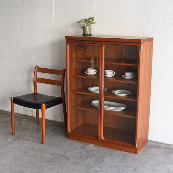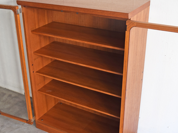 日田工芸 チーク材ガラス開き戸棚