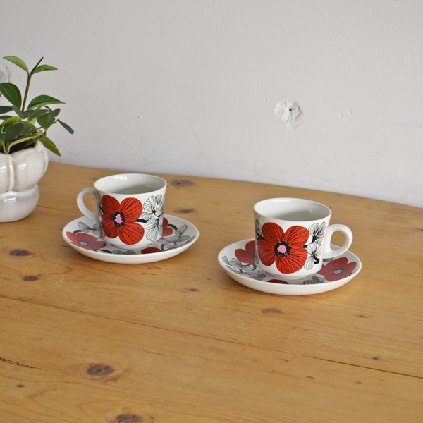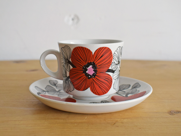 フィンランドArabia、“Isokukka” (イソクッカ) シリーズのコーヒーC&Sです。1969年から74年にかけて展開されていたシリーズ。