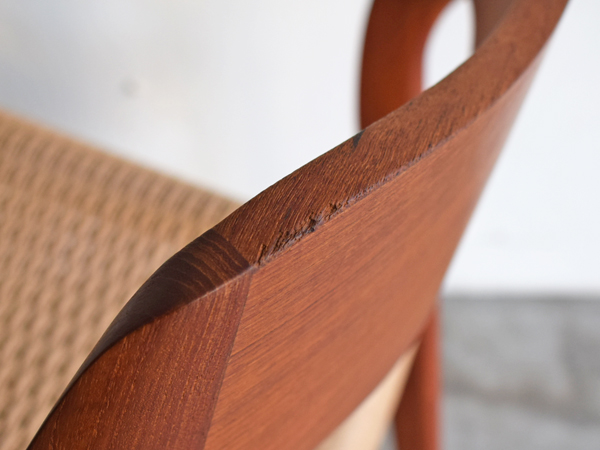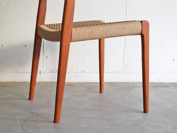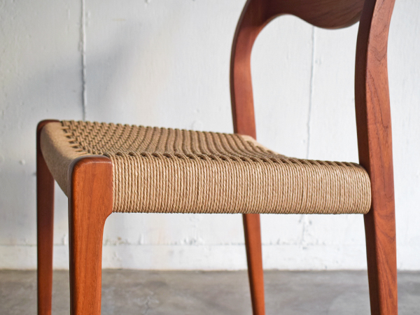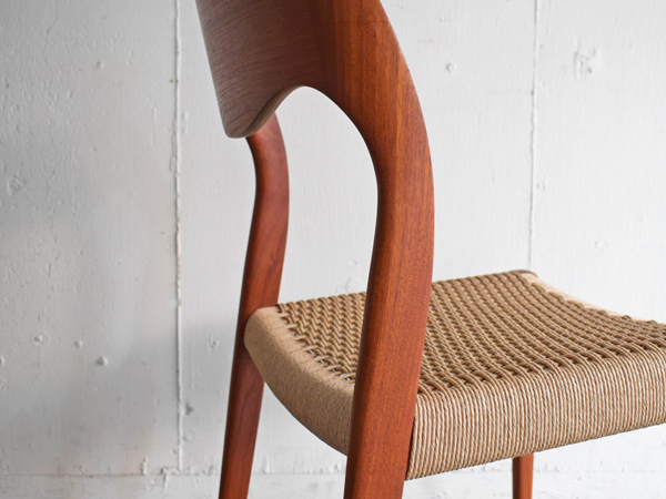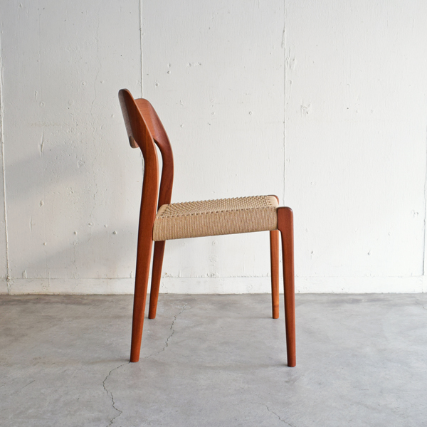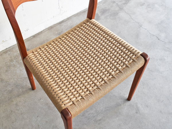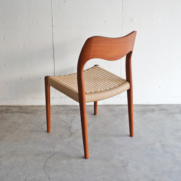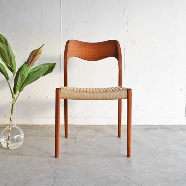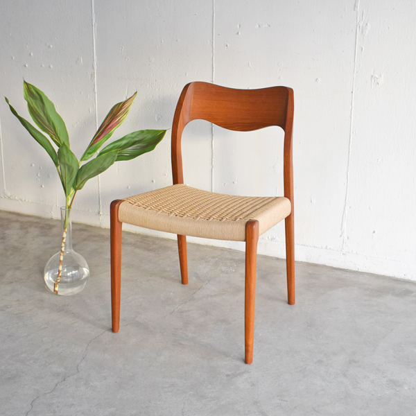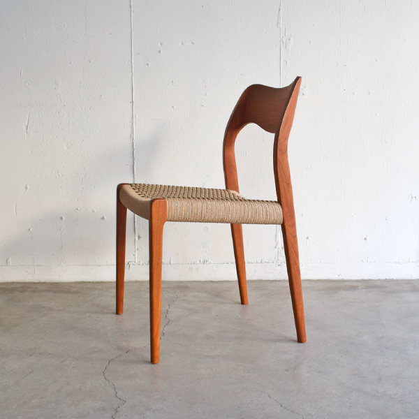 デンマークを代表する家具工房、J.L.Moller社により1951年に発表されたダイニングチェア"No.71"です。同社の創業者でもあるN.O.Mollerによるデザインで現行でも発売されているモデルですが、こちらはチーク材が使用されたヴィンテージ。座面のペーパーコードは新規に張り替えています。