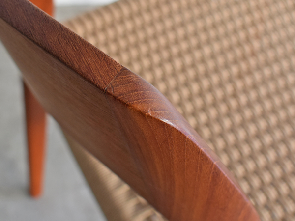 今では希少材となりつつあるチーク材のモデルはヴィンテージのみで入手可能。ペーパーコードのナチュラルな色味が明るく軽快な印象を与えており、縦横の編み目の美しさも特筆ものです。