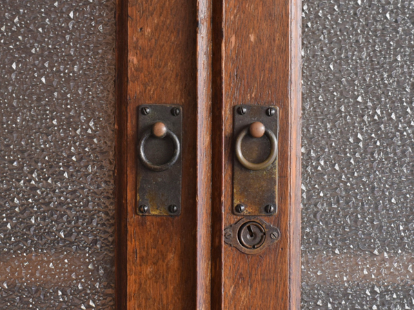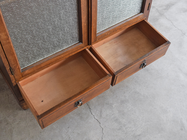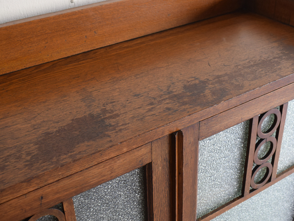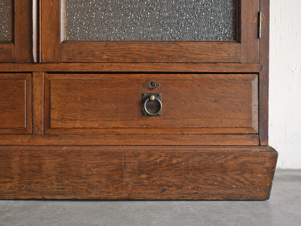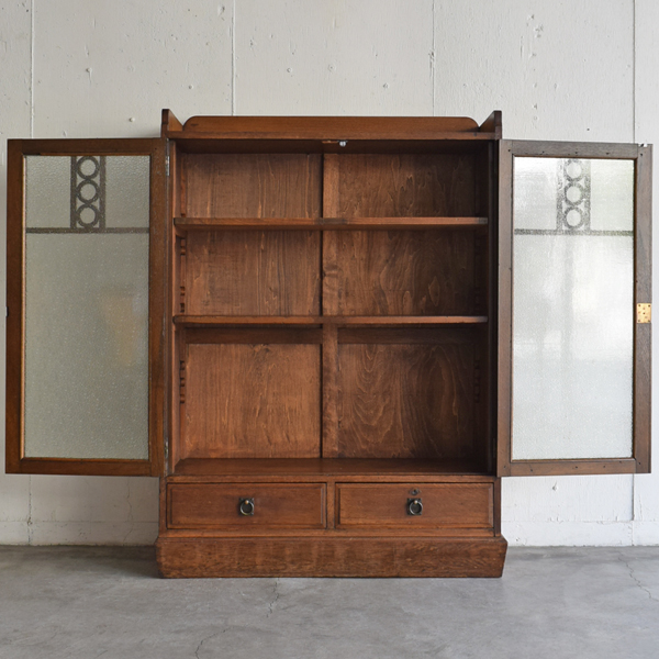主要な部分にナラの無垢材が使用された、ガラス開戸の書庫です。昭和初期。