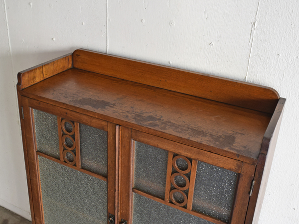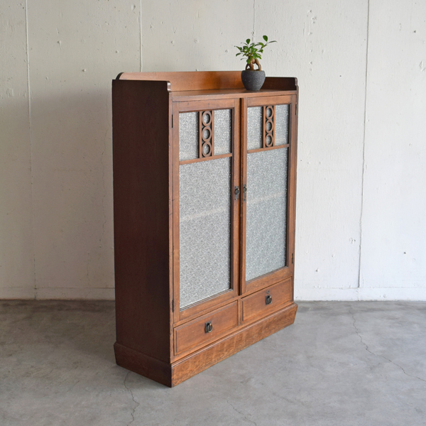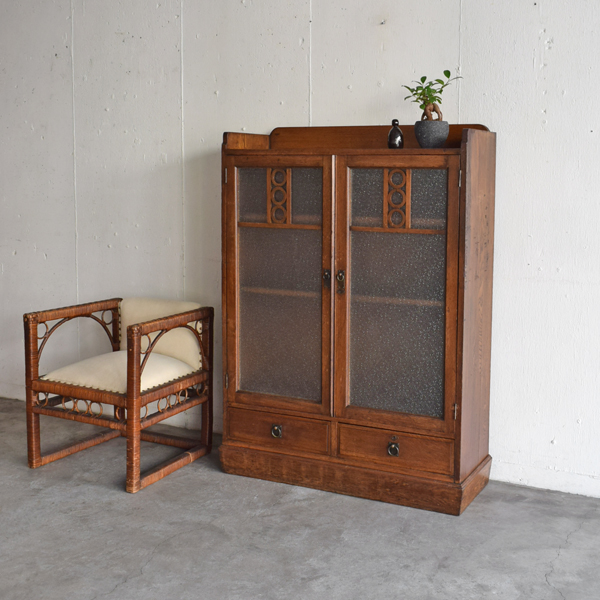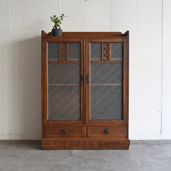 ナラ無垢材 ダイヤガラス開戸書庫